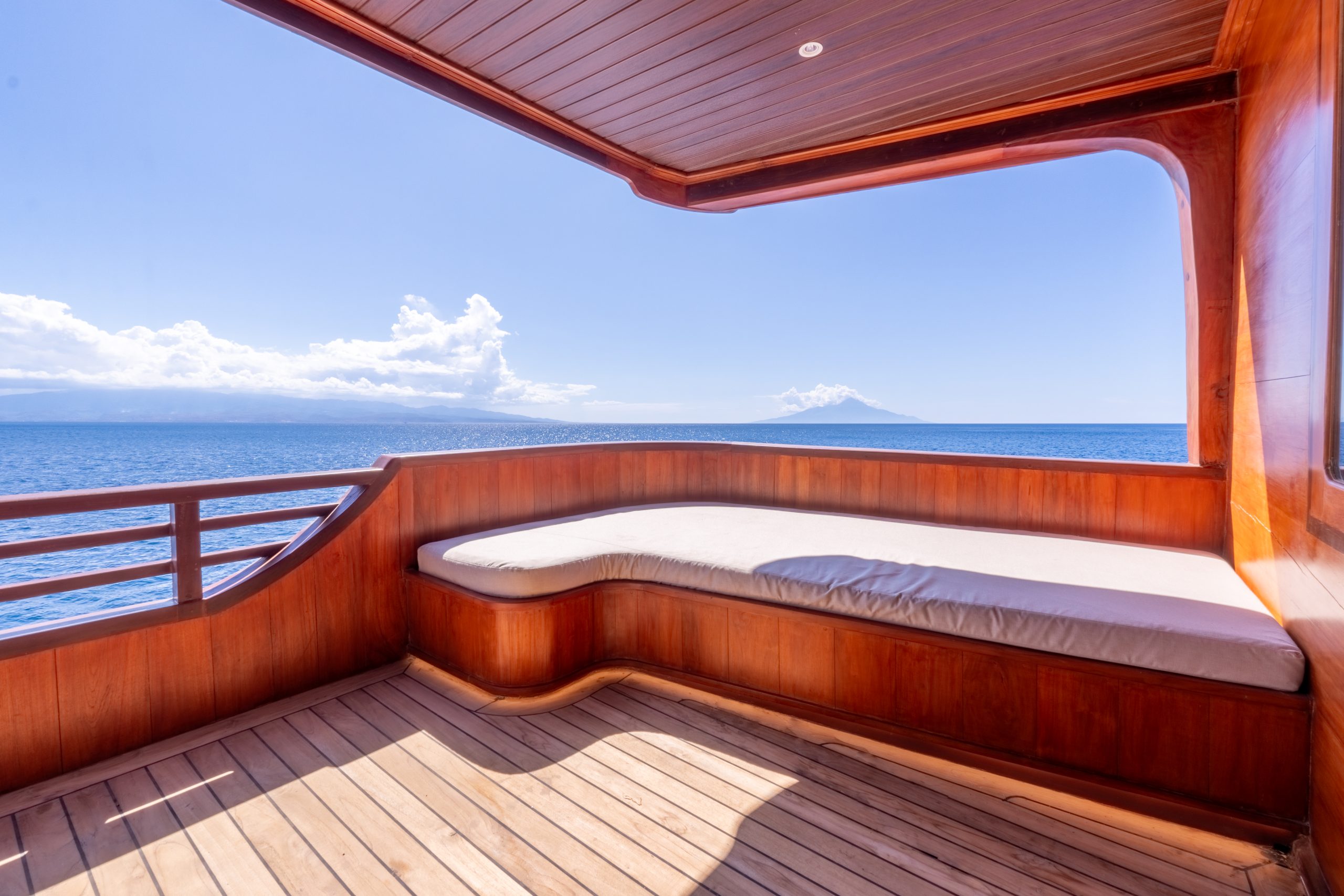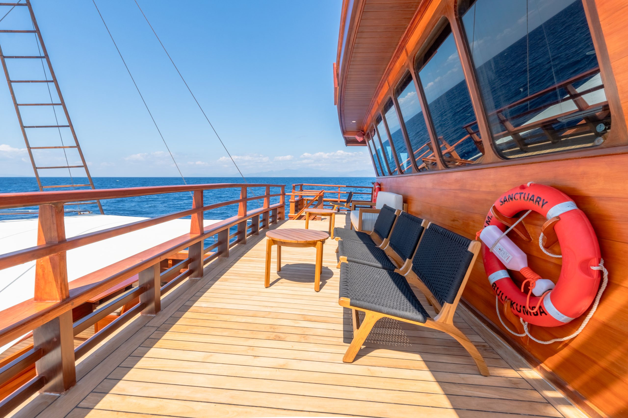 Sanctuary Phinisi is a 48m luxury vessel, blending traditional Indonesian craftsmanship with modern sophistication. Designed for private charters, she offers expansive open-air lounges, a rooftop jacuzzi, and personalized five-star service.