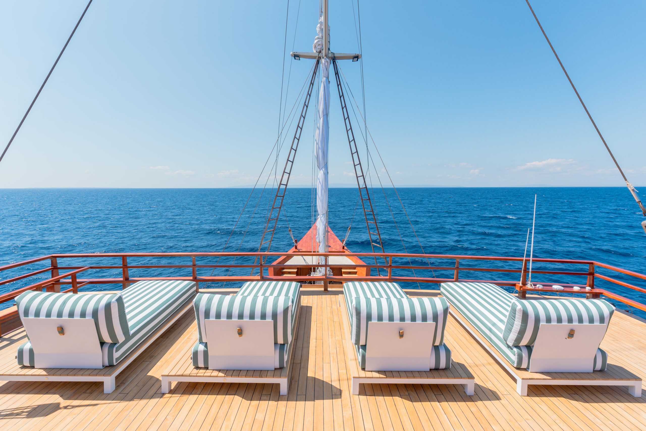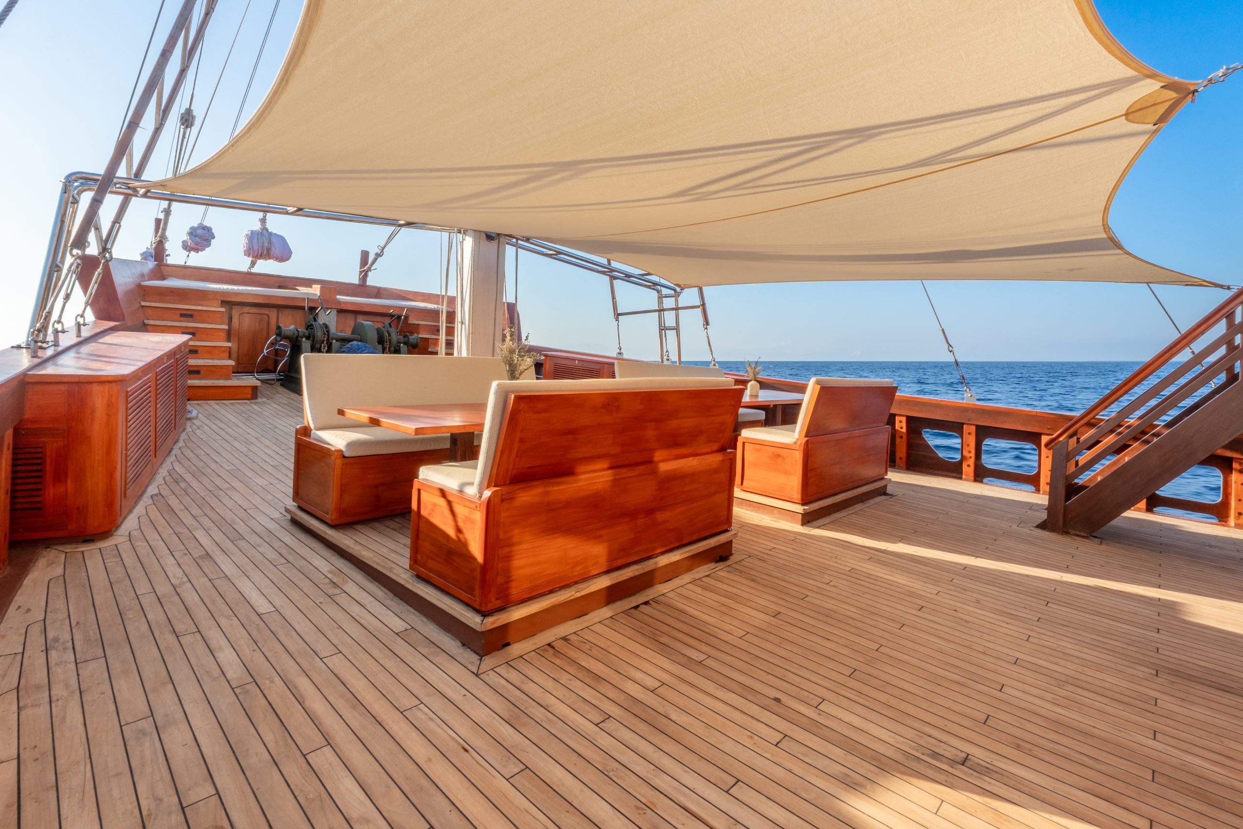 - 48m luxury phinisi, built in 2023, blending traditional Indonesian craftsmanship with modern design.